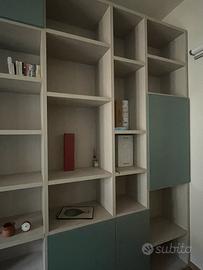mobile libreria (che ha anche l’alloggio per la tv) lungo 4.7 m e alto 2.6 m, profondità 40 cm.