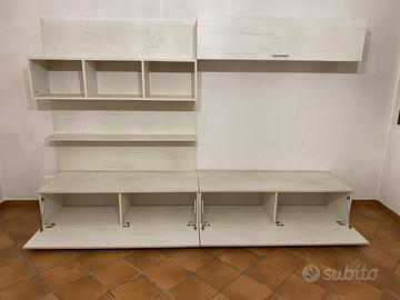 Vendo causa trasloco, mobile da salotto, effetto legno bianco, in buonissime condizioni ( solo 14 mesi di utilizzo) , di dimensioni 277 x 183 di altezza.