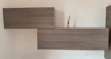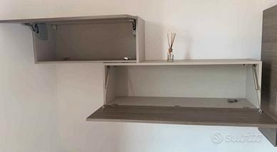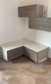 È composto da 4 pensili e 2 cassettiere che possono essere montate sia ad angolo (come in foto), sia in maniera lineare.