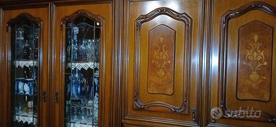 Vendo mobile anni 60 classico, 3 metri x 2, angolare con spazio per il televisore. Compreso tavolo tondo allungabile e 6 sedie Prezzo simbolico