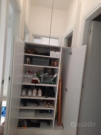 Vendo mobile scarpiera, ripostiglio asse da stiro e ripiani alti per borse e/o documenti, libri etc, realizzato da falegname, con ante specchiate di 90 cm e alto 2,55 m (le misure dettagliate sono in foto).