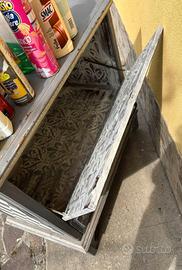 mobile legno su ruote con anta ribaltabile e cassetto shabby chic