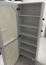 Mobile/scarpiera salvaspazio montato. È stato sostituito lo specchio centrale con un pannello in finta muratura. Misure H 1,60 L 53cm P 25cm.