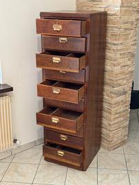 Affascinante mobile schedario d’epoca in rovere, restaurato con cura e sottoposto a trattamento antitarlo. In ottime condizioni, pronto per aggiungere carattere a qualsiasi ambiente.