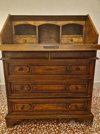 Vendo mobiletto ribalta in legno massello, colore noce, con scrittoio/scomparto interno con cassettini, 3 cassetti.