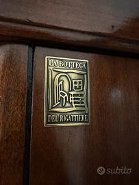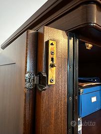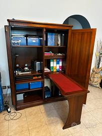 Vendo mobile scrittoio in legno massello, struttura robusta e finitura calda, con marchio del produttore.