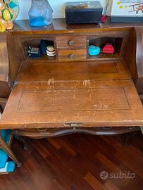 Vendo Mobile scrivania con cassetti antico da ritoccare + specchio .+ sedia