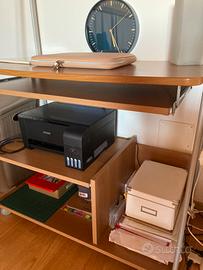 Mobile in legno con ruote, ideale per mettere computer e stampante, comodo e pratico e di ottima fattura, le dimensioni sono 144x90x51 profondità. Presenta un foro (come da foto) che è stato fatto per far passare i cavi del PC. Lo vendo smontato, pratico da trasportare e facile da montare.