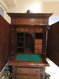 Mobile antico del 1850 adattabile a stile shabby chic, con cassetti esterni e interni, ripiano scrittoio estraibile e scomparto segreto, stile secretaire Francese.