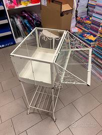 Mobile vintage / invecchiato / stile shabby chic in metallo bianco panna e vetro con funzione da piccola serra ma utilizzabile anche da arredamento (porta bottiglie, soprammobili ecc. ecc.) misure: larghezza 42cm / profondità 28cm / altezza 105 cm.
