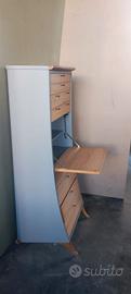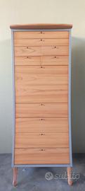 Mobiletto Settimanale Artigianale Progetti - Legno di Ciliegio Un pezzo unico per il tuo arredamento, realizzato con passione e maestria. Questo mobiletto settimanale è un'opera d'arte artigianale, prodotto artigianalmente con cura e dedizione da artigiani esperti che hanno collaborato con il prestigioso mobilificio Giorgetti. Caratteristiche Principali: Materiale d'Eccellenza: Il mobiletto è realizzato in pregiato legno di Ciliegio massiccio, scelto per la sua venatura calda e la sua naturale eleganza. A differenza della classica produzione Giorgetti in mogano, questa versione in ciliegio offre una tonalità più luminosa e un fascino unico. Finitura Impeccabile: La lavorazione artigianale si traduce in una finitura liscia e setosa, che esalta la bellezza del legno senza alterarne la naturalezza. Design Funzionale: Con i suoi dieci cassetti e un'antina a ribalta, il mobiletto offre ampio spazio per organizzare i tuoi oggetti con ordine. La struttura solida e resistente garantisce una lunga durata nel tempo. Dettagli Raffinati: I cassetti sono dotati di eleganti pomelli in metallo, che si integrano perfettamente con lo stile sobrio e raffinato del mobiletto. Provenienza Garantita: La collaborazione con il mobilificio Giorgetti è sinonimo di qualità e professionalità, e questo mobiletto ne è una testimonianza tangibile. Un'opportunità Imperdibile: Questo mobiletto settimanale è molto più di un semplice mobile; è un pezzo di storia artigianale, che porterà un tocco di eleganza e personalità alla tua casa. Se sei alla ricerca di un mobile unico, di alta qualità e ricco di significato, questa è l'opportunità che fa per te! Dimensioni HxPxL 151x56x60,5 Disponibilità 10 pezzi! !!!DISPONIBILE SOLO RITIRO IN ZONA!!!