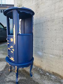 Vendo mobiletto restaurato shabby chic,blu scuro e applicazioni oro. Misure : h 90.5 l 47.5 p 40 Ritiro a Pralormo (To)