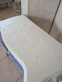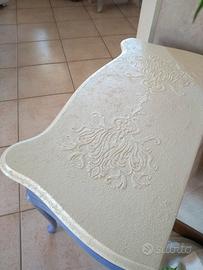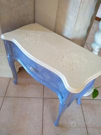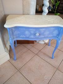 Mobiletto con marmo interamente ridipinto in stile shabby, colori viola chiaro e bianco