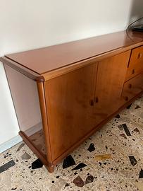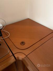 Vendo elegante mobile ad angolo componibile in legno color ciliegio, ideale per soggiorno o sala da pranzo. Struttura solida e ben rifinita, con linee classiche e angoli arrotondati.