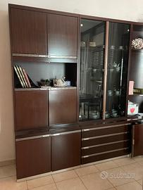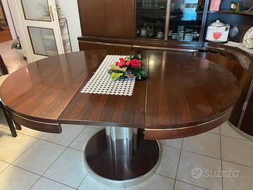 Mobile soggiorno ad angolo misure 2,70 mt per 1,40 mt con tavolo tondo D=1,16 mt allungabile a 1,57 mt. In regalo con ritiro a Vs. carico