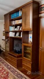 Bellissimo mobile soggiorno in stile arte povera, in legno massello color noce. Smontaggio e trasporto a carico dell’acquirente. Misure: altezza 270 cm. Lunghezza 240cm. Profondità 35 cm. Prezzo trattabile.