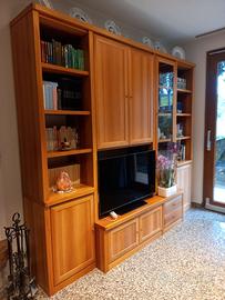 mobile da soggiorno con vetrinetta in noce biondo.antine in vero legno
