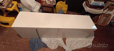 Mobile soggiorno bianco lucido180,5x54,5x45 di profondità in buonissimo stato,solo un graffio sul fianco laterale, come da foto.