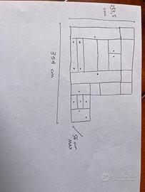 Mobile soggiorno in legno di noce pieno, comprato da un mobiliere 15 anni fa. Ancora in ottimo stato. Colore giallo sbiadito (Pantone 100c) e marrone. Misure L x H x LA (massime): 354 x 56 x 233.5 cm Zona Brescia attualmente semi smontato