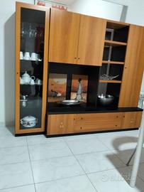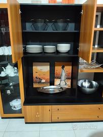 mobile da soggiorno nero e marrone con ripiani e cassetti come mostrato in foto, per contenere: piatti, tazze, bicchieri ecc.