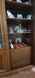 Mobile soggiorno in legno massiccio con vetrine laterali e frontali. Cassettiera interna posizionata nell'anta central inferiore non visibile ad alta chiusa. Scaffali laterali non visibili ad ante laterali chiuse. Da smontare e ritirare a cura dell'acquirente.