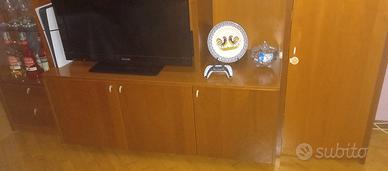 Ottima occasione per chi cerca qualità e tanto spazio. Non è un mobile economico da grande distribuzione. Ritiro sul posto. Lunghezza 2400 x larghezza 410 (parte più piccola) 560(parte più larga) altezza 2320 mm.