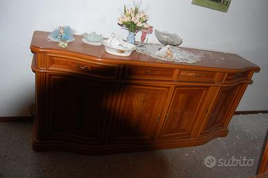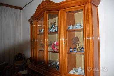 Mobile da soggiorno anni 80 come in foto, con vetrina lunga 3 metri + "como'" lungo 3 metri + tavolo con 6 sedie il tutto in ottime condizioni (prezzo trattabile).