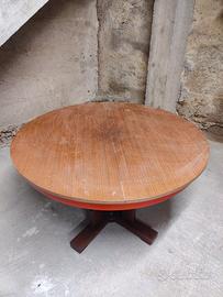 Il tavolo, abbinato al mobile, è robusto e stabile, con base centrale in legno e bordo rosso coordinato. Possibilità di allungarlo con prolunga integrata.