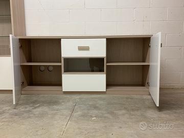 Vendo mobili da soggiorno, di colore bianco. composto da vetrina altezza 189 profondità 34 larghezza 96 e credenza altezza 80 profondità 42 larghezza 180. Il tutto acquistato meno di un anno fa a mondo convenienza per una casa in affitto, poi lasciata. Quindi pari al nuovo. Prezzo di listino 755. Per ulteriori informazioni non esitate a contattarmi