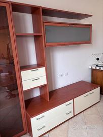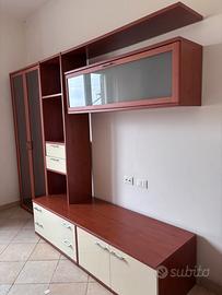 Per cambio progetto abitativo, propongo parete soggiorno completa in stile moderno, caratterizzata da linee pulite e finiture eleganti. La combinazione tra effetto legno caldo e ante color crema lucido crea un insieme raffinato, adatto sia ad ambienti contemporanei che più classici. Un elemento d’arredo pensato non solo per la TV, ma come struttura completa per organizzare e valorizzare lo spazio living. 📐 Dimensioni: •Larghezza totale: 277,5 cm •Altezza: 212 cm •Profondità max: 56 cm •Vetrina: larghezza 92 cm – profondità 35 cm 🧩 Composizione: •Vetrina con ante in vetro per esposizione •Colonna con ripiani a giorno •4 cassetti (2 grandi + 2 piccoli) •Base contenitiva con ante •Pensile sospeso con apertura a ribalta •Mensola superiore lineare ✨ Caratteristiche distintive: •Ottima capacità contenitiva senza appesantire visivamente •Struttura solida e ben progettata •Ideale per creare una parete TV ordinata ed elegante •Perfetto equilibrio tra funzionalità ed estetica 📦 Condizioni: molto buone, ben tenuto 🔧 Fornito smontato 🚚 Ritiro a carico dell’acquirente 📍 Visionabile su appuntamento 💬 Disponibile per ulteriori informazioni ❤️ Preferisco vendita a chi ne apprezza qualità e composizione. ⛔️ No perditempo.