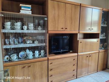 Mobile soggiorno in legno chiaro con diversi scaffali e cassetti. In ottime condizioni. Lunghezza 3.25cm Altezza 2.15cm profondità 42cm Disponibile solamente per ritiro presso abitazione entro 24 Aprile zona Cure Firenze Montaggio e smontaggio a carico dell’acquirente.