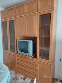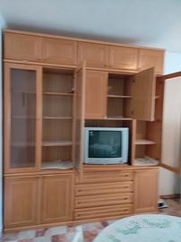 Il mobile puo' essere utilizzato sia in cucina che in una sala da pranzo. Ideale per arredare una seconda casa o un appartamento da affittare. Si trova in ottime condizioni ed e' estremamente capiente: ante porta oggetti sulla parte superiore, vetrinette a colonna, numerosi cassetti e un ripiano girevole per vedere la TV da ogni angolazione. Altezza 253 cm - larghezza 222 cm e profondita' di 45 cm. Ritiro, smontaggio e trasporto a carico dell'acquirente.