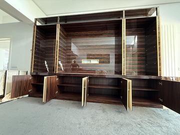 Mobile da soggiorno lungo 320cm Ebano Macassar di EDRA. Tanti ripiani interni, materiale di alta qualità. Ottimo stato.