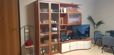 Mobile soggiorno, divano in pelle poltronesofa,4 sedie da rivestire la seduta il tutto tenuto benissimo. Insieme mobile più stereo.