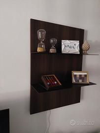 Pannello (L75cm) eucalipto con 2 mensole carbon grey, illuminazione luce LED lato destro.
