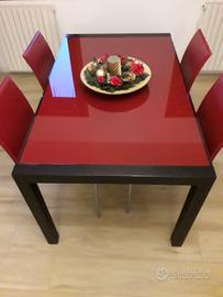 Volendo si può abbinare con un tavolo ALLUNGABILE in vetro temperato firmato Target Point, base in metallo, con sistema telescopico di allunga, con 2 pezzi di allunga, 4 sedie in pelle rossa compresi. Tavolo vendo per 590€.