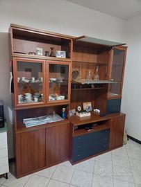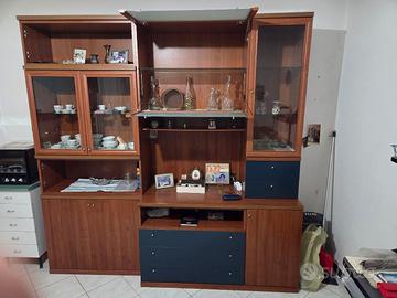 Come da foto, moderno mobile soggiorno / TV in ottime condizioni. Smontaggio e ritiro a carico dell'interessato. Dimensioni Lunghezza 225 cm x profondità 42 / 58 cm x Altezza 225 cm.