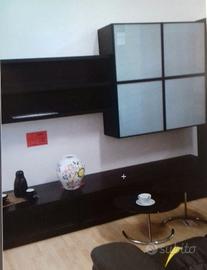 MOBILE IN MASSELLO FINITURA WENGE CM 290 X 60 COMPLETO CON VETRINE E MENSOLE