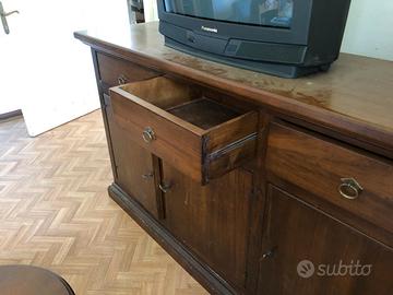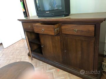 Vendo come da titolo mobile massiccio in arte povera . Poco utilizzato , ben tenuto . Misure largh 170 cm , prof . 50 cm , h 95 cm . Misura cassetto : largh 47 cm, h 15 cm, prof 42 cm . Smontaggio a carico dell acquirente .