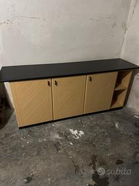 Vendo parete attrezzata da soggiorno in buone condizioni, composta da più moduli. Colore legno chiaro con finiture nere, design semplice e funzionale. Include: armadi con ante vetrinetta centrale vani a giorno base porta TV mobile basso coordinato (come da foto) Ideale per soggiorno o seconda casa. Condizioni buone, qualche normale segno d’uso ma struttura solida.
