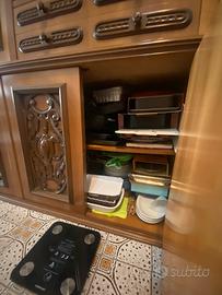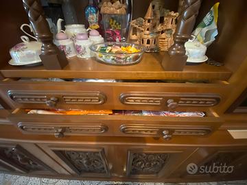 Vendo bellissimo mobile da soggiorno in legno stile classico, composto da vetrina e credenza con ante e cassetti. Il mobile è solido, spazioso e ideale per arredare salotto o sala da pranzo. Presenta eleganti decorazioni intagliate e vetrine laterali per esporre servizi, bicchieri o oggetti decorativi. All’interno è in buone condizioni e perfettamente utilizzabile. MOBILE SOTTO LA TV E IN REGALO 📏 Mobile molto capiente, adatto a chi cerca un arredamento tradizionale e di carattere. Condizioni: Buone Prezzo: 250 € trattabili 📍SASSUOLO:Ritiro a mano (mobile grande e pesante) Per qualsiasi informazione o per vederlo dal vivo, contattami senza problemi.