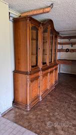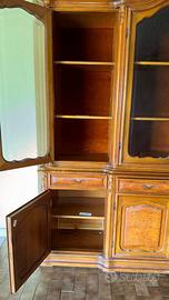 Mobile soggiorno in radica scomponibile con vetrina, altezza 240 cm, larghezza 230 cm, profondità 50 cm
