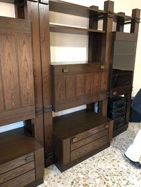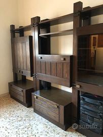 Cedo parete attrezzata divisibile in due segmenti. Dotata di cassettoni e ante. Misure h.195 cm, L 295 cm. A causa di lavori di ristrutturazione già avviati la struttura risulta smontata, al fine di rendere più agevole il trasporto. Il tutto si trova a Corsano. Non spedisco, solo ritiro a mano dopo presa visione.