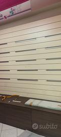 vendo mobile per soggiorno con parete dogata supporti e mensole in vetro temprato. cassettoni dimensioni lunghezza 270 cm, altezza 230cm profondità 54cm