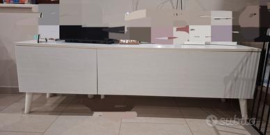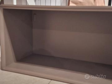 Mobile soggiorno bianco frassino e fango opaco diviso in una parte superiore e una bassa