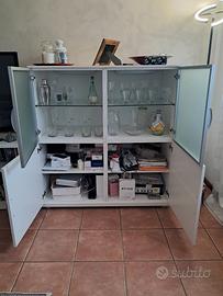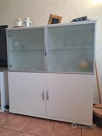 Vendo 2 credenze cubiche arredo soggiorno con ante superiori in vetro stinato e complete di piedini.