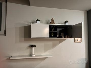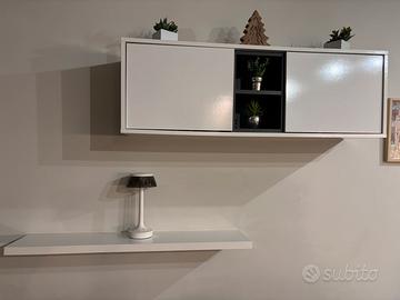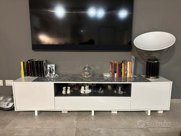 Mobile porta Tv laccato bianco lucido 2,00xh45 due antine a battente e 1 a ribalta centrale + vetrina cieca a parete 105xh35 piu sotto mensola lunga 95cm/ vendo anche separatamente