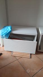 Mobile soggiorno con vetro sul piano di appoggio 2 ante e un cassetto. misure 180 x 40 x 38h. Mobiletto con vetro sul piano di appoggio con cassetto da poter unire al mobile. misure 60 x 40 x 38h. RITIRO A MANO. (MOBILE NON SMONTATO)