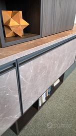 Il mobile unisce materiali tecnici di qualità e finiture calde, creando un effetto raffinato e attuale.