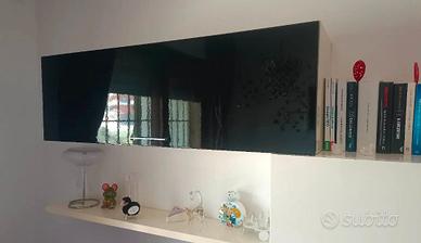 Sono presenti due ampi pensili chiusi uno con anta nera lucida e uno con anta bianca opaca per ottimizzare lo spazio.